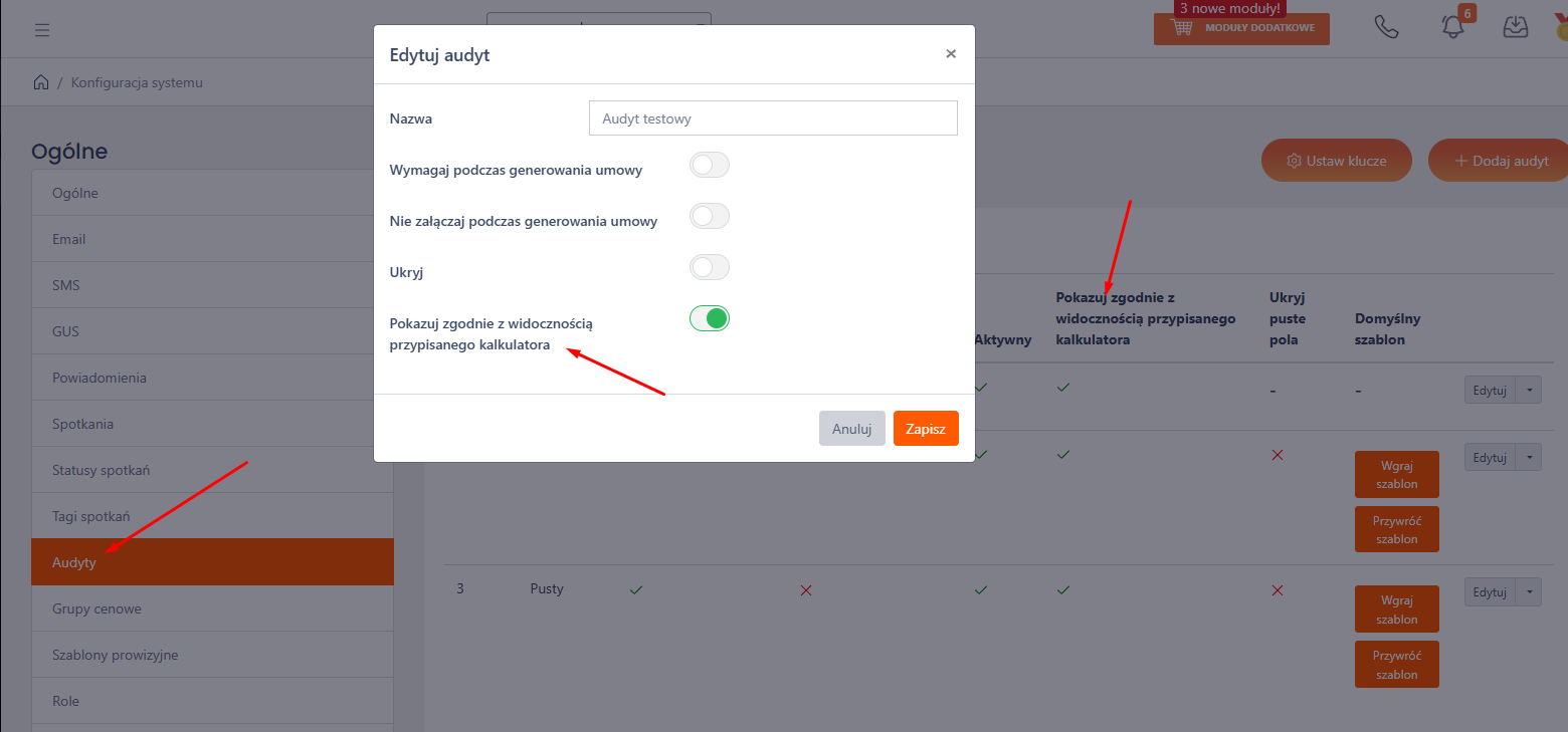 27. W audytach dodano opcję, dzięki której można ograniczyć widoczność audytu, zgodnie z dostępnością kalkulatorów, do których przypisany jest audyt.